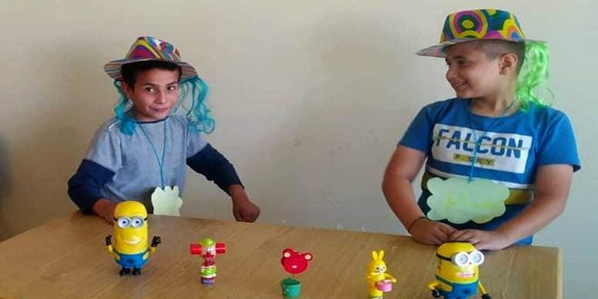 Homs-SANA / Dans le but d’apporter un soutien psychosocial aux enfants et aux adolescents, environ 50 bénévoles se sont rendus aux plusieurs villages au nord-est de Homs afin de faire des activités et contribuer à alléguer les impacts négatifs de la guerre sur les enfants dans cette région.