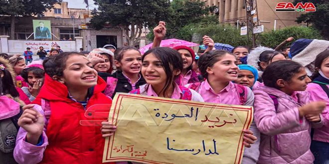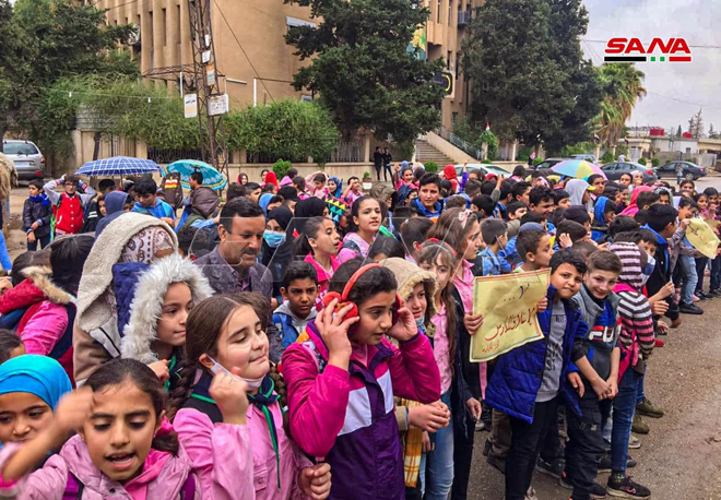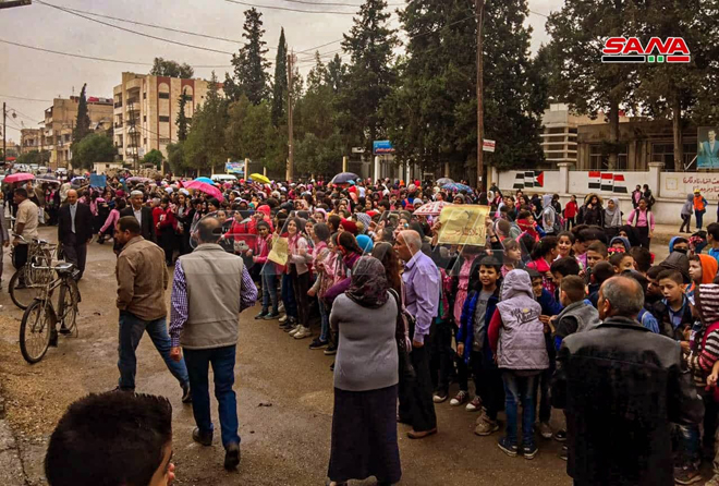 Les participants au sit-in ont mis l’accent sur la nécessité de l’intervention des autorités concernées et des organisations humanitaires pour mettre fin aux pratiques de la milice des « FDS », soutenue par les forces d’occupation américaine, qui menacent l’avenir des étudiants et des élèves, la réouverture des écoles et l’enseignement des méthodes approuvées par le ministère de l’Education syrien.