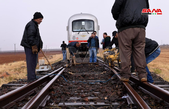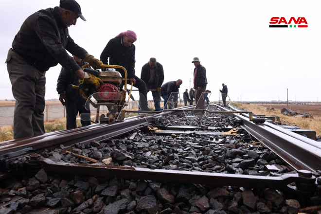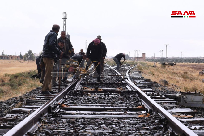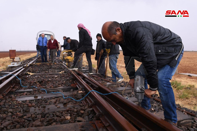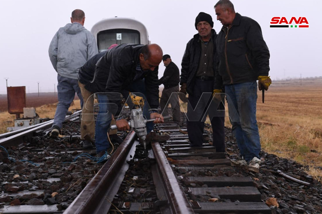 Les travailleurs de la Société des chemins de fer d’Alep continuent l’action dans diverses circonstances pour réhabiliter la voie ferrée entre Alep et Hama afin de la mettre en service