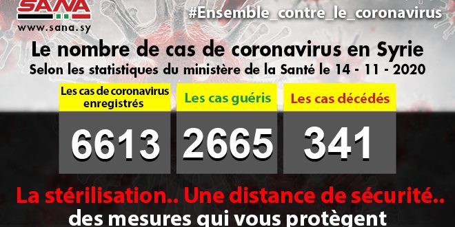 Dans un communiqué dont une copie est parvenue à SANA, le ministère a fait savoir que le bilan des cas de coronavirus enregistrés jusqu’à présent en Syrie avait atteint 6613, dont 2665 cas de guérison et 341 décès.