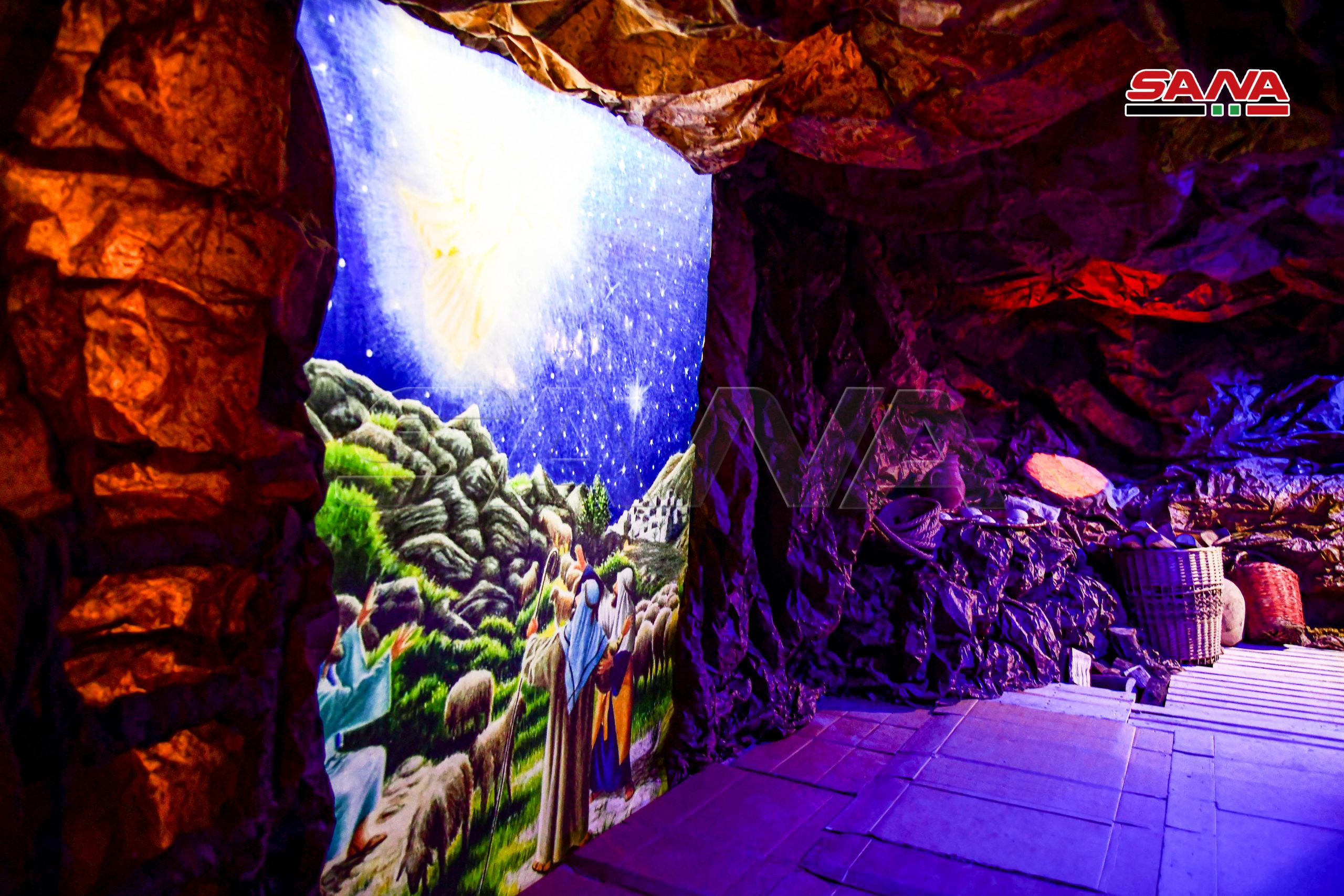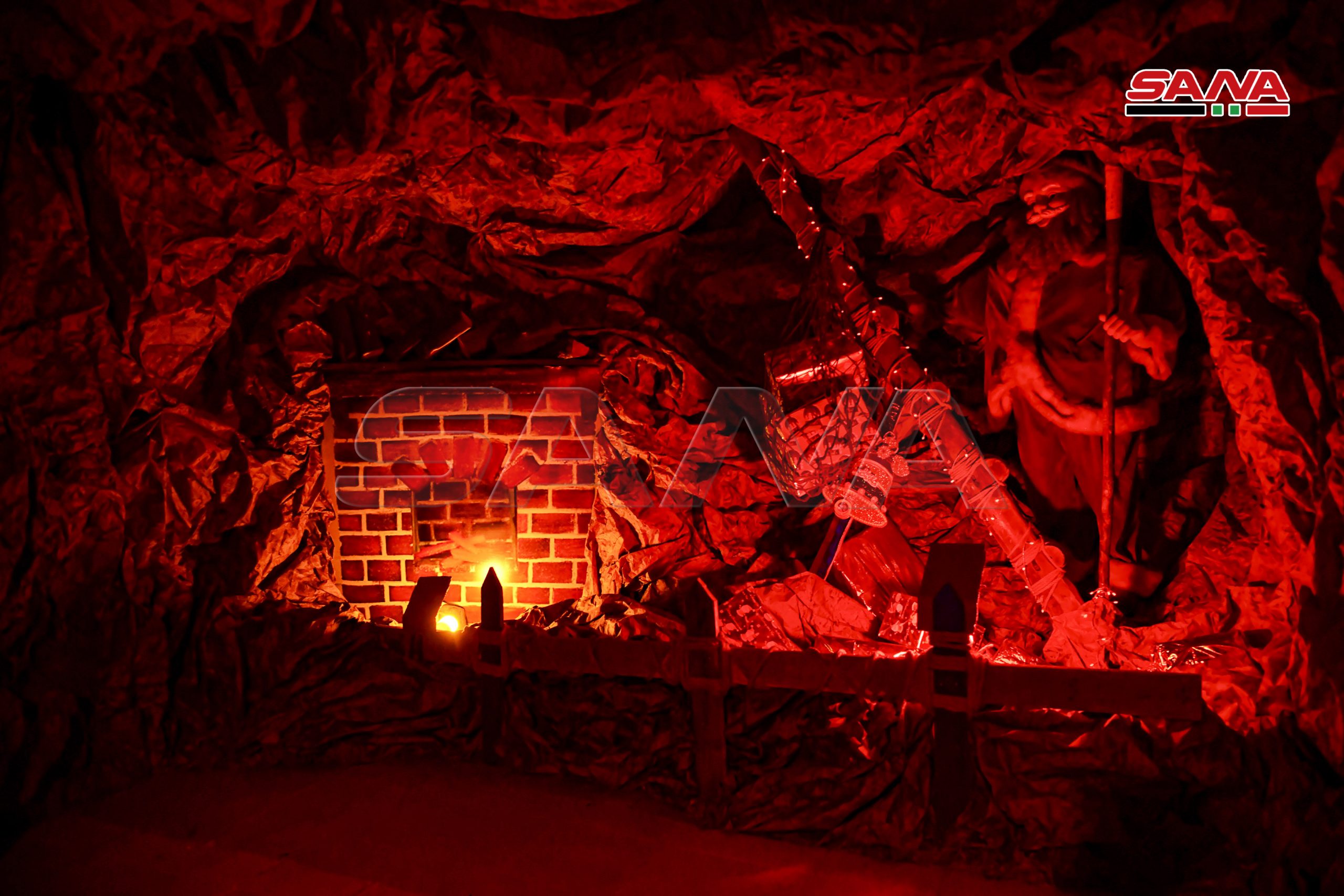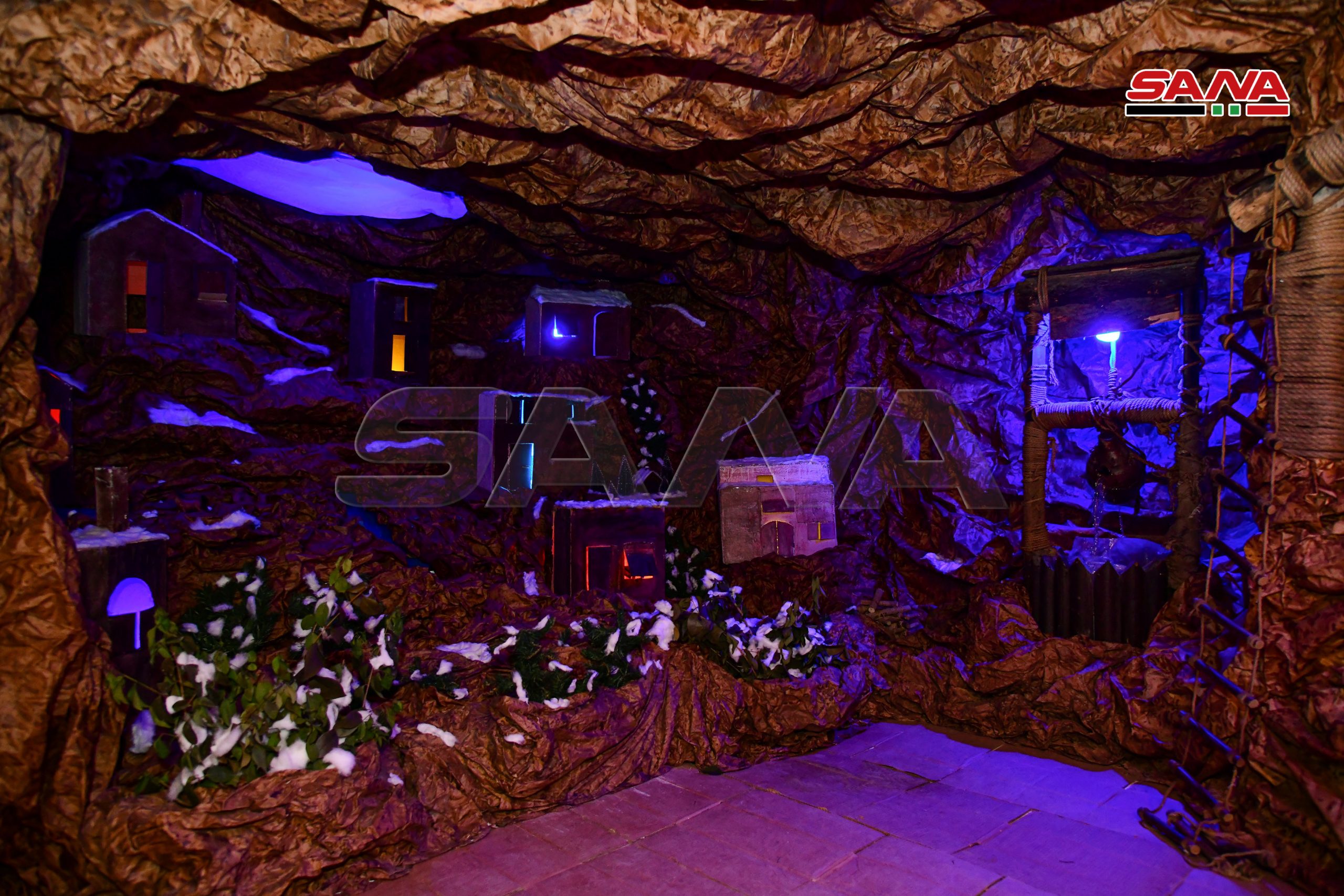 Damas-SANA / Avec le début du mois de Noël et au milieu d’une ambiance de célébrations populaires et religieuses, la grotte du Père Noël, s’étalant sur une superficie de 400 m², a été inaugurée aujourd’hui dans l’église de Saint-Elie pour les grecs orthodoxes à Dweilaa à Damas.