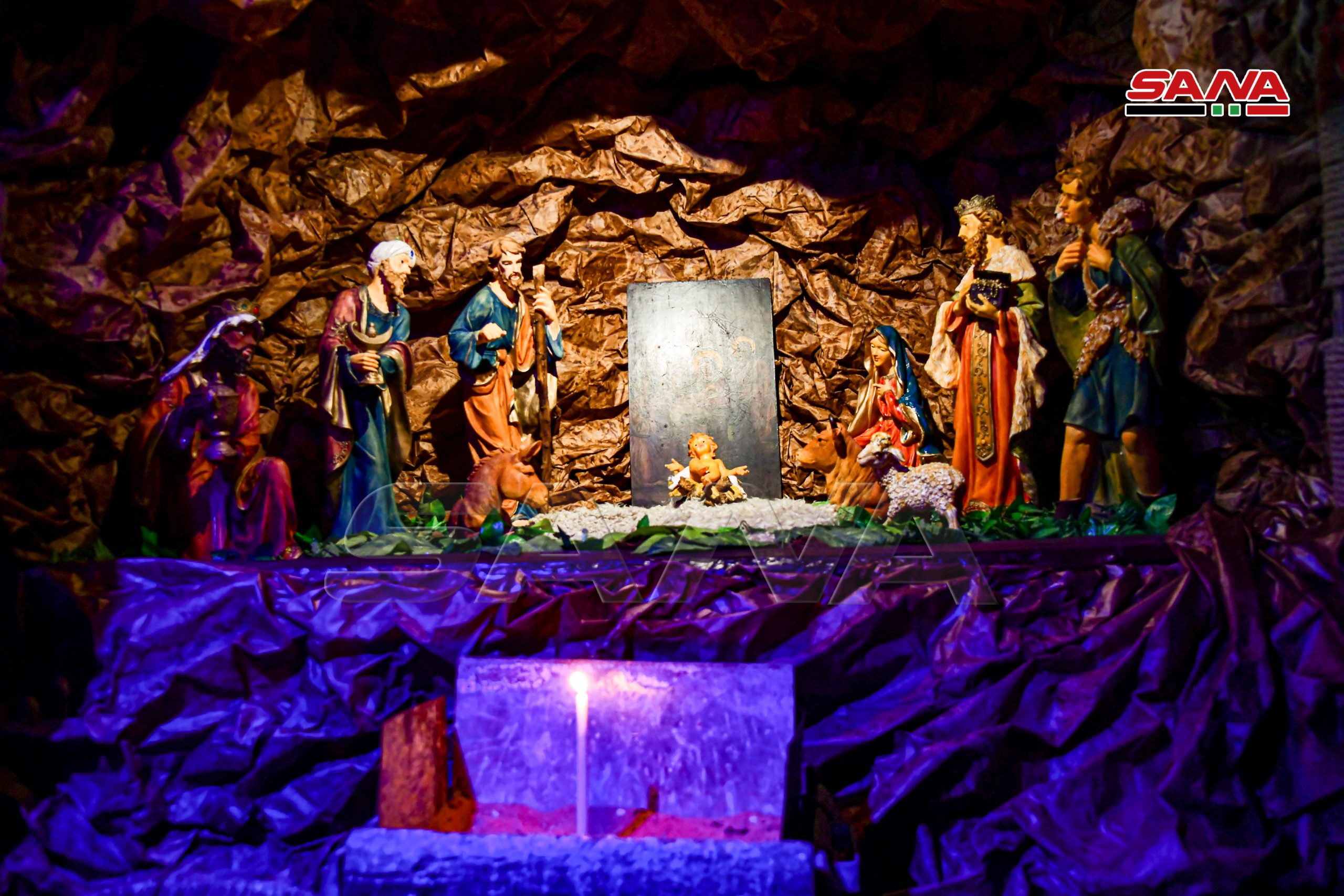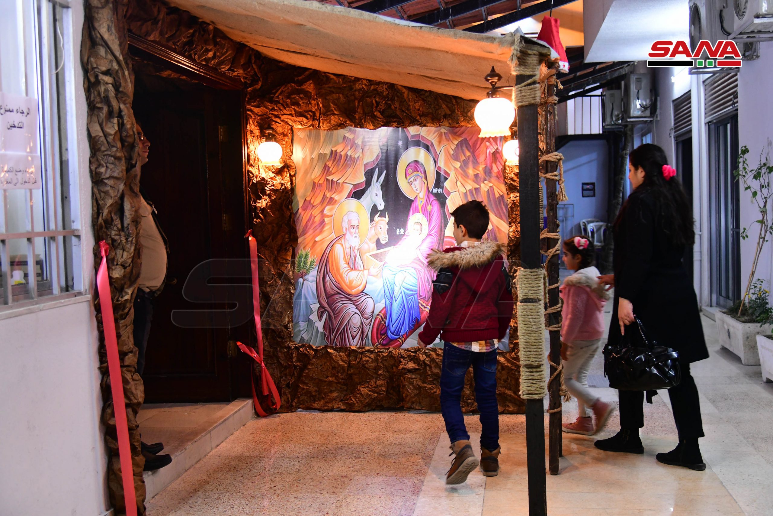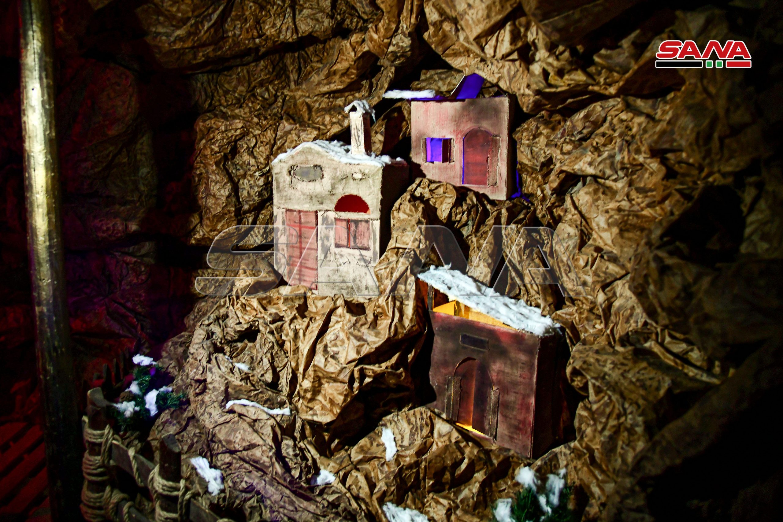 Damas-SANA / Avec le début du mois de Noël et au milieu d’une ambiance de célébrations populaires et religieuses, la grotte du Père Noël, s’étalant sur une superficie de 400 m², a été inaugurée aujourd’hui dans l’église de Saint-Elie pour les grecs orthodoxes à Dweilaa à Damas.