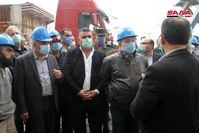 A Tartous, le président du Conseil des ministres a pris connaissance du mécanisme de l’évacuation de la meunerie dans le port de Tartous, laquelle a été incendiée la semaine dernière, écoutant du personnel concerné une explication sur les mesures prises et les étapes de travail.