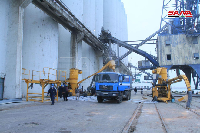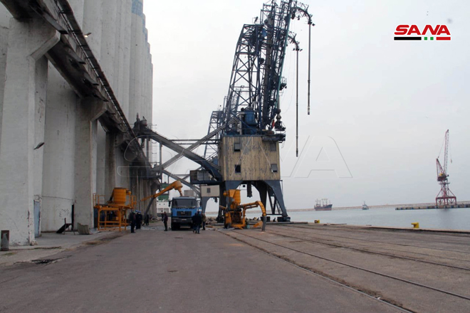 Arnous s’informe des opérations de l’évacuation de la meunerie au port de Tartous