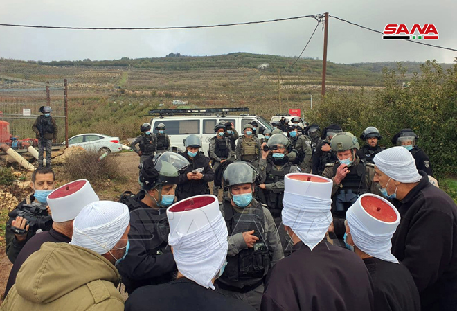 Confrontant aujourd’hui les forces d’occupation alors qu’elles tentaient d’exécuter leur plan expansionniste d’établir des turbines éoliennes dans la zone de Masnaa, les Golanais ont affirmé leur rejet de ce plan qui ne sera point exécuté quels que soient les sacrifices.