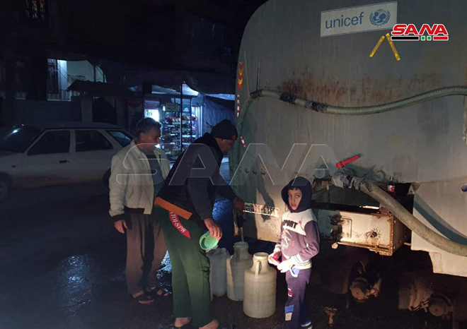 Dans une déclaration à SANA, le directeur général de la société d’eau à Hassaké, Mahmoud Akleh, a dit que tous les puits dans la station sont disposés au fonctionnement, ainsi que la ligne de tension électrique, mais les violations menées par les forces d’occupation turques et leurs mercenaires empêchent le fonctionnement de la station.