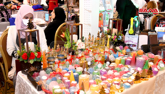 Damas-SANA/À l’occasion de la fête de Noël, plus de 100 produits dans la domine des industries de la nourriture, de l’artisanat et des vêtements, ainsi que des associations caritatives participent au bazar du shopping qui a lieu à l’hôtel « Four Seasons» à Damas.