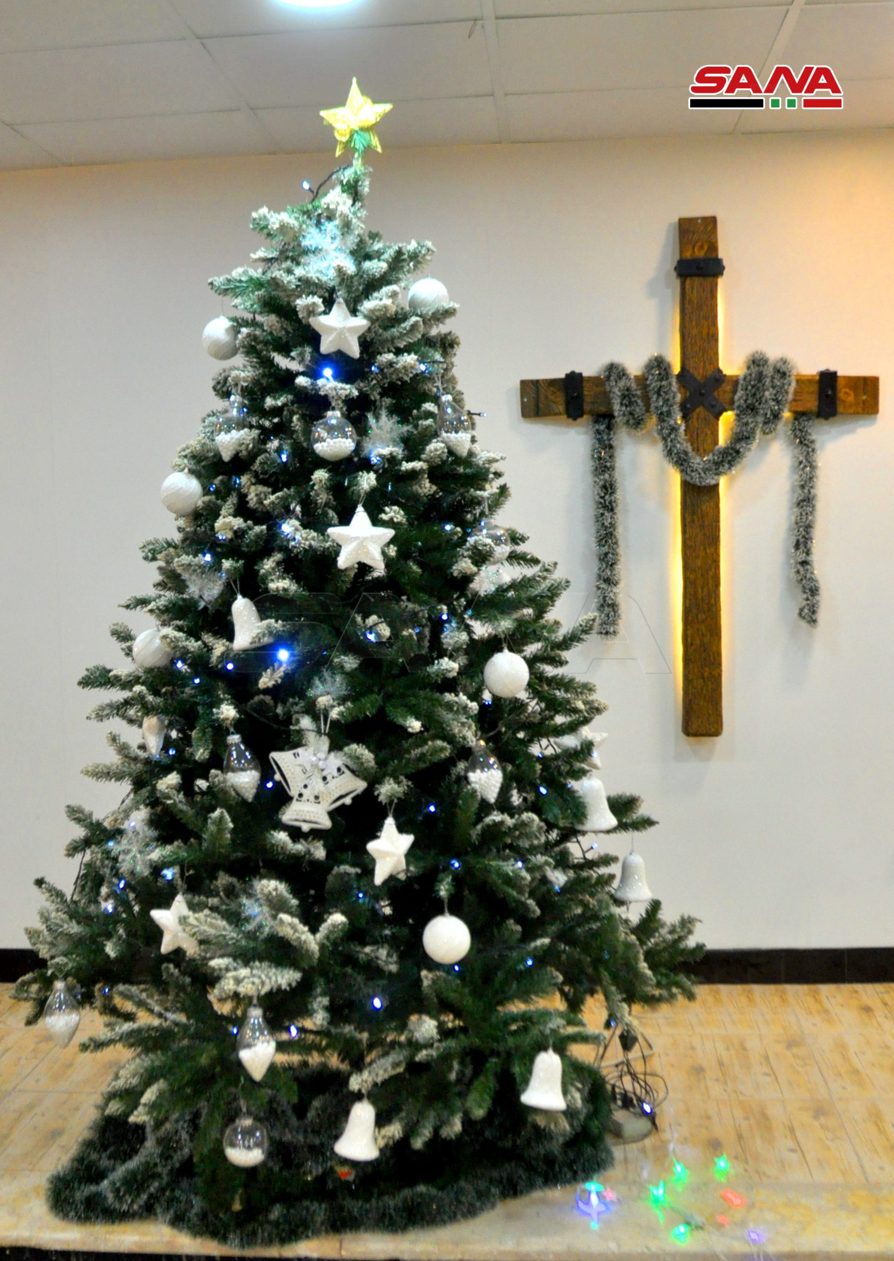Illumination d’un grand sapin de Noël à Kafarbaham à Hama
