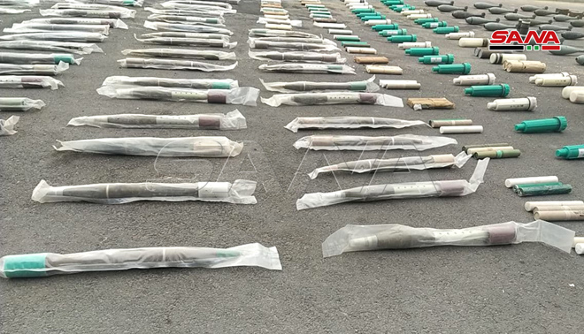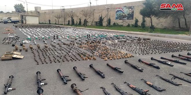Damas-SANA/ Le correspondant de SANA a fait savoir que les services compétents avaient découvert des quantités d’armes et de munitions, dont certaines de fabrication israélienne, et un drone abandonnés par les terroristes dans la région sud.