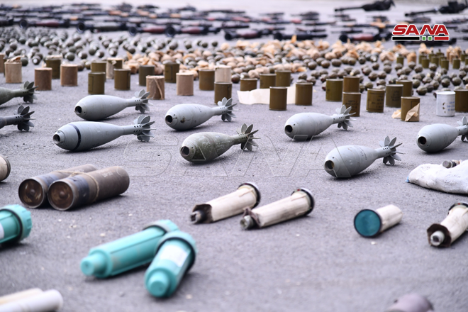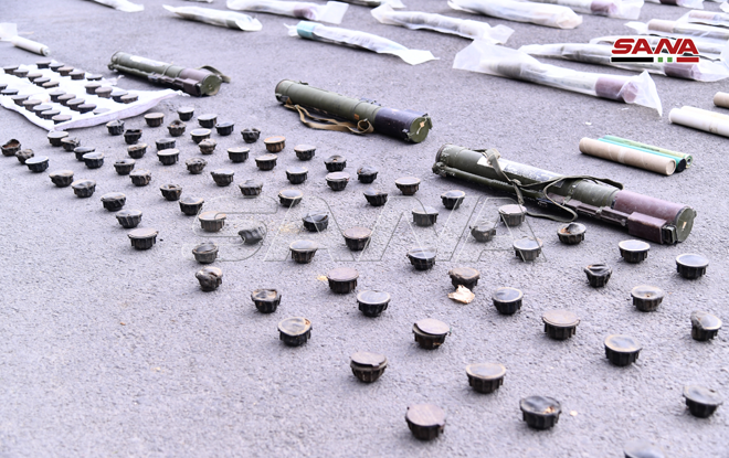 Damas-SANA/Les services compétents ont découvert des quantités d’armes et de munitions, dont certaines de fabrication israélienne, et un drone, abandonnés par les terroristes dans la région sud.