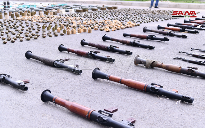 Dans une déclaration qu’elle a donnée au correspondant de SANA, une source des services compétents a indiqué que « après la surveillance et en collaboration avec les unités de l’arme arabe syrienne dans la région sud, de grandes quantités d’armes diverses et de munitions moyennes, lourdes et légères abandonnées par les terroristes, dont certaines de fabrication israélienne, avaient été saisies ».