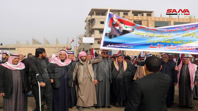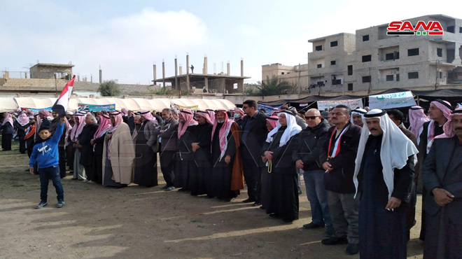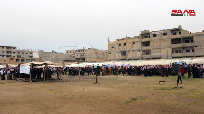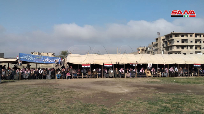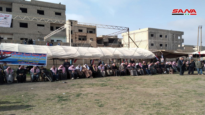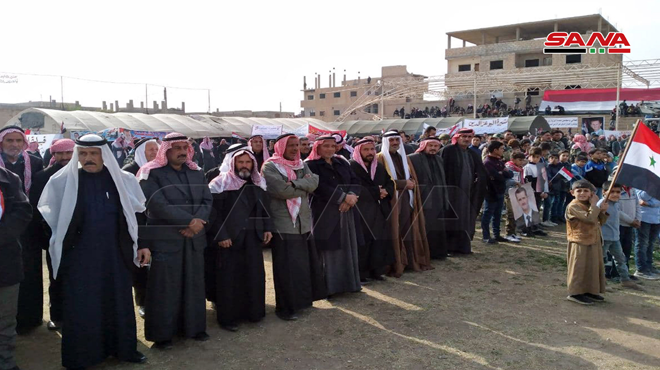 Deir Ezzor -SANA /Les cheikhs des tribus syriennes ont rejeté des deux occupations américaine et turque et leurs mercenaires, affirmant qu’ils s’attachent à l’intégrité territoriale de la Syrie et qu’ils se tiennent aux côtés de l’armée arabe syrienne dans sa guerre contre les réseaux terroristes.