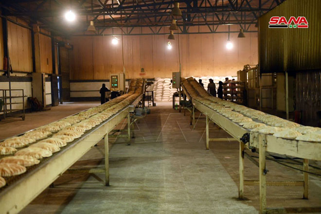 Dans une déclaration qu’il a donnée au correspondant de SANA, le directeur de l’établissement syrien des boulangeries, branche d’Alep, l’ingénieur Jihad al-Samman, a indiqué que le nombre des lignes qui produisent le pain s’élève à 33 lignes automatiques, avec une potentialité productive de 350 tonnes par jour.
