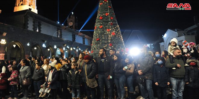 Illumination du sapin de Noël dans la cathédrale Notre-Dame al-Niah à Damas