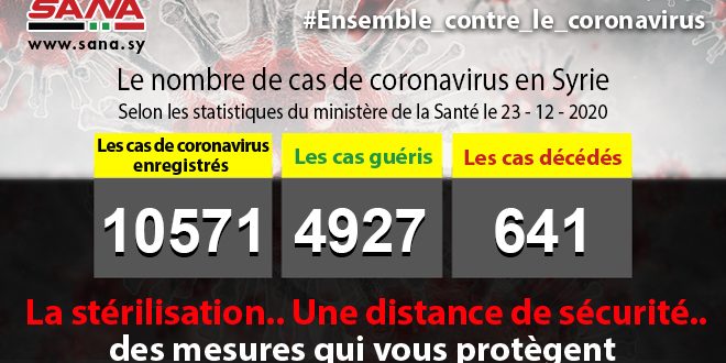 Dans un communiqué, dont une copie est parvenue à SANA, le ministère a fait savoir que le bilan des cas de coronavirus enregistrés jusqu’à présent en Syrie avait atteint 10571, dont 4927 cas de guérison et 641 décès.