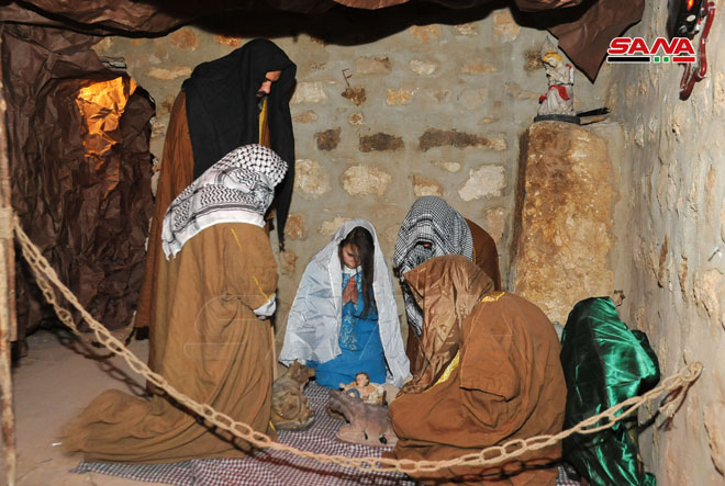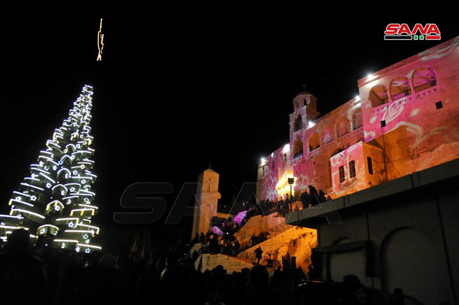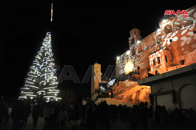 Illumination du sapin de Noël et ouverture de la grotte de noël à la cathédrale Notre-Dame à Saydnaya.