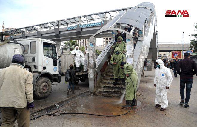 Campagne de désinfection dans les rues de Damas pour consolider les mesures anti-coronavirus