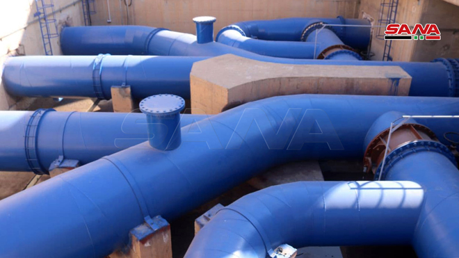 Arnous et la délégation qui l’accompagne se sont informés des travaux de réhabilitation des magasins, des marchés et de la première boulangerie automatique dans le quartier libéré, Hamidiya, dans la ville de Deir Ezzor, du projet de réhabilitation de la canalisation principale d’eau usée et des dommages dans le pont de Baath, qui a été détruit par les avions de combat de la soi-disant « Coalition internationale » illégale, dirigée par Washington.