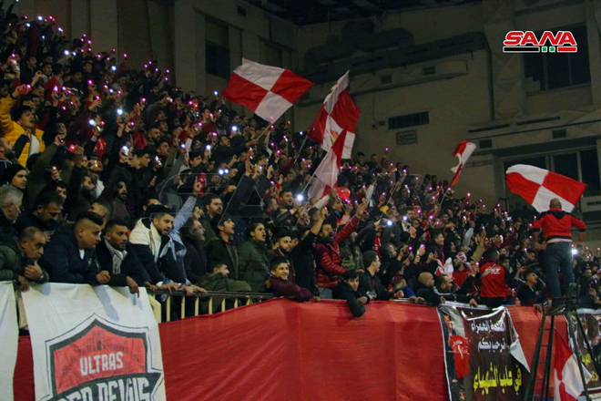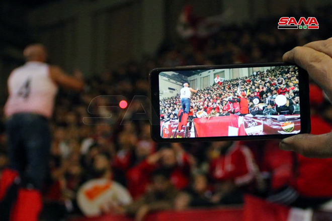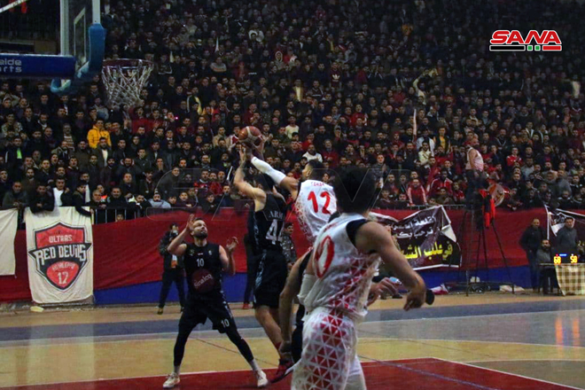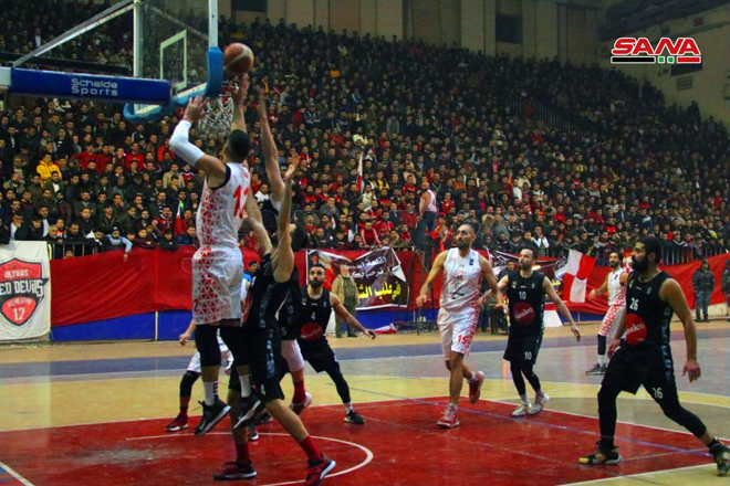 Match de basketball entre les deux équipes d’al-Itihad et d’al-Jaïch dans la salle sportive d’al-Assad