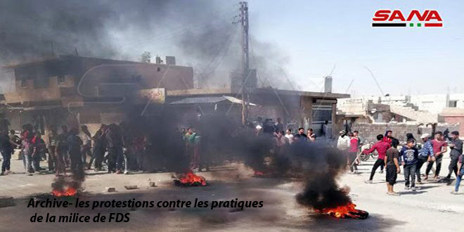 Raqqa- Deir Ezzor /SANA / Un certain nombre de terroristes des FDS soutenues par l’occupation américaine ont été tués ou blessés par des attaques sporadiques contre leurs « Q.G » et leurs déplacements menées par des personnes non-identifiées dans les banlieues de Raqqa et de Deir Ezzor