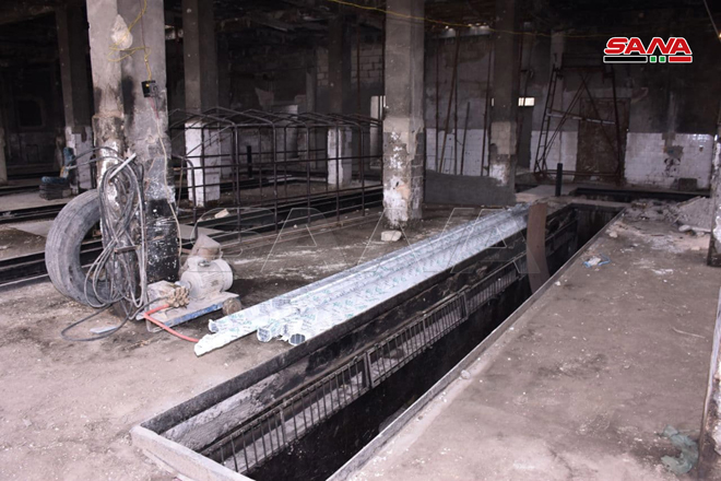 Restauration du centre de maintenance et de rassemblement d’autobus du transport en commun à Ain al-Tal à Alep dans le but de le mettre en service