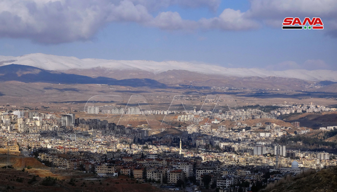 Des chutes de la neige sur les montagnes à la périphérie de Damas