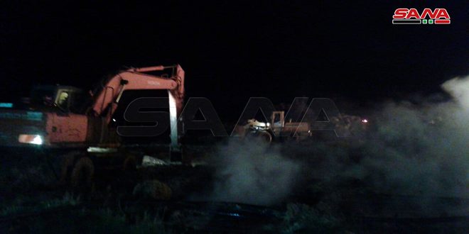 Les opérations d’extinction de l’incendie qui a éclaté à la suite de l’explosion d’un camion-citerne dans la compagnie syrienne de transport du pétrole brut à Homs
