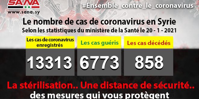 Dans un communiqué, dont une copie est parvenue à SANA, le ministère a révélé que le bilan des cas de coronavirus enregistrés jusqu’à présent en Syrie avait atteint 13313 , dont 6773 cas de guérison et 858 décès.