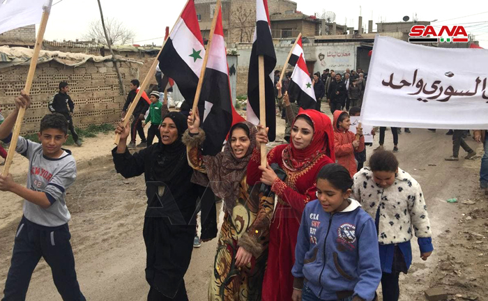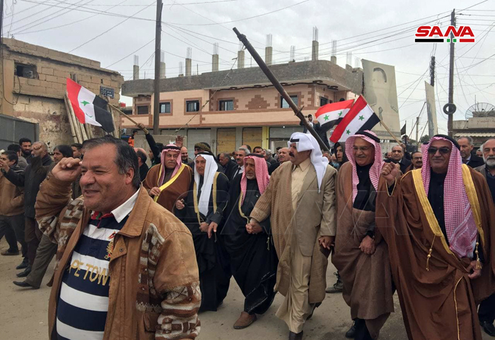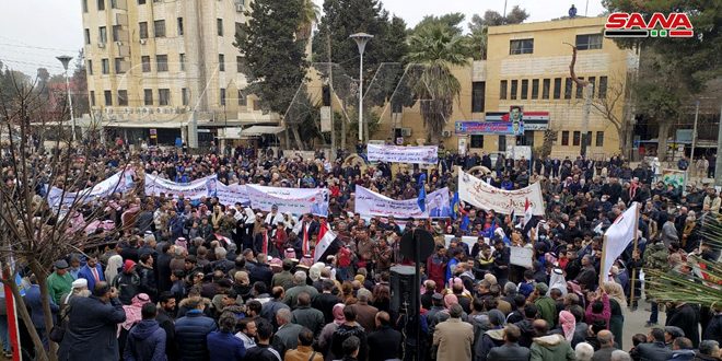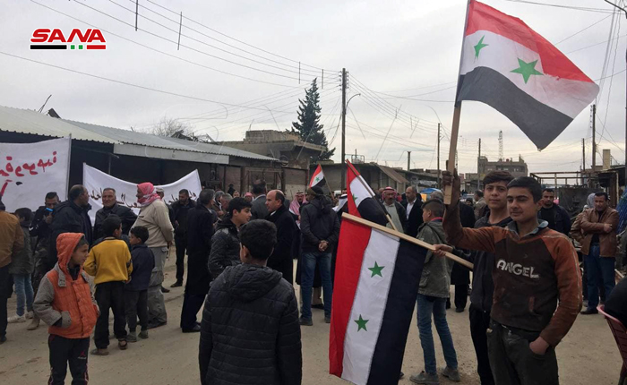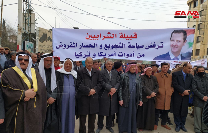 Hassaké-SANA /Les habitants des deux villes de Hassaké et Qamicheli ont observé aujourd’hui deux sit-in de protestation, avec la participation de cheikhs et dignitaires des tribus dans les deux villes, pour condamner les violations de la milice des « FDS » qui impose un siège injuste aux quartiers résidentiels, empêche l’acheminement des denrées alimentaires, perturbe le mouvement de transport et prive les étudiants de leurs écoles.