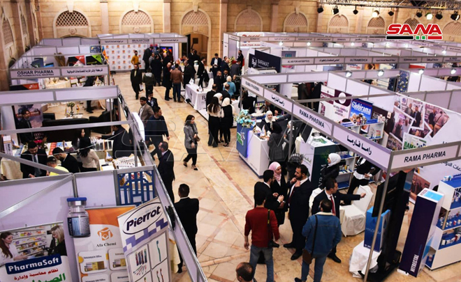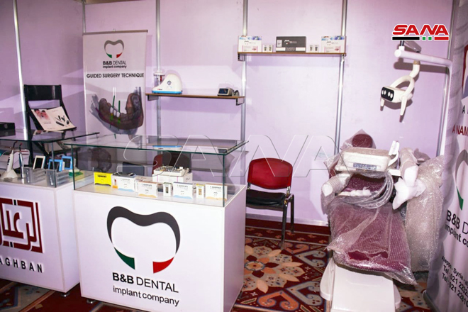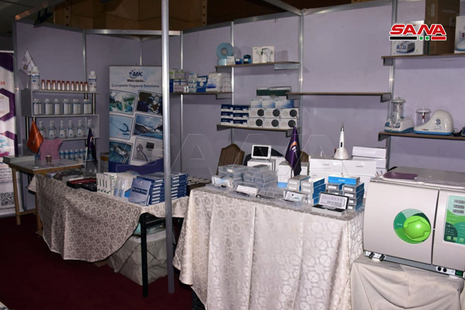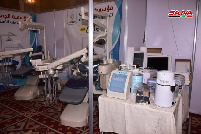 Les derniers équipements des dentistes et les médicaments dans une exposition à Alep