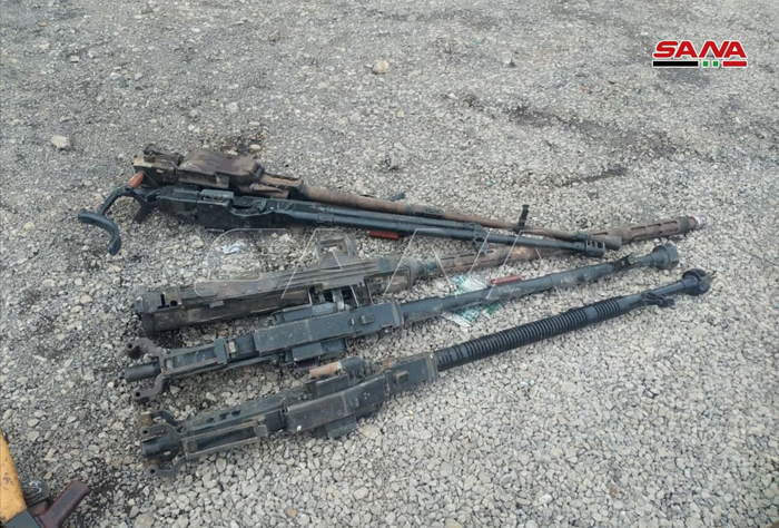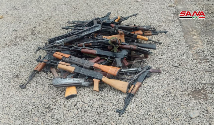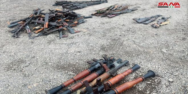 Daraa-SANA/La correspondante de SANA à Daraa a indiqué que les services compétents avaient découvert des quantités d’armes et de munitions abandonnées par les groupes terroristes dans la banlieue est de Daraa.