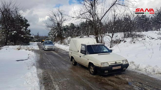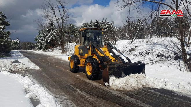 Poursuite de la réouverture des routes bloquées par la neige dans la banlieue ouest de Homs