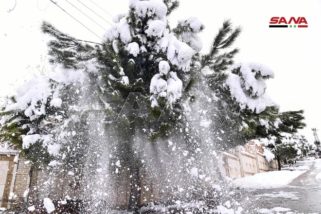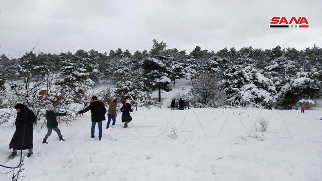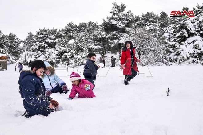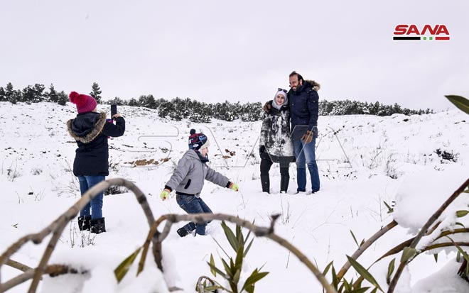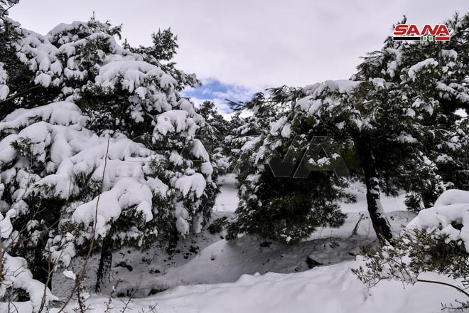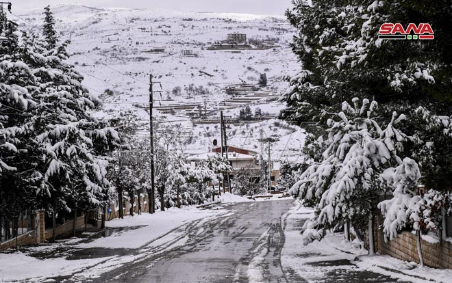 Episode neigeux sur les montagnes du Qalamoun et le village de Harfa
