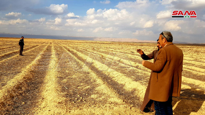 03/03/2021 Les agriculteurs de la zone de Bayyarat Gharbiya dans la banlieue de Palmyre continuent de cultiver du blé malgré les difficultés 2021-03-03 admin Share tweet