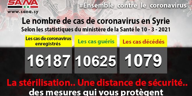 Dans un communiqué, dont une copie est parvenue à SANA, le ministère a fait savoir que le nombre des cas de coronavirus enregistrés jusqu’à présent en Syrie avait atteint 16187 cas, dont 10625 cas de guérison et 1079 décès