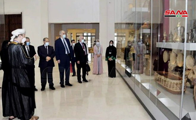 Le ministre Miqdad a commencé ses activités aujourd’hui dans le Sultanat par la visite du musée national omanais, où il a vu le manuscrit du « Livre des intérêts dans la connaissance de la science et des règles » pour le navigateur omanais, Chihab Eddine Aḥmad ibn Mājid al-Saadi, emprunté de la bibliothèque en République arabe syrienne au musée national à Muscat, puisque le président Bachar al-Assad avait promulgué un décret portant sur le fait d’emprunter le manuscrit au Sultanat d’Oman, où il a été restauré pour l’exposer devant le public.
