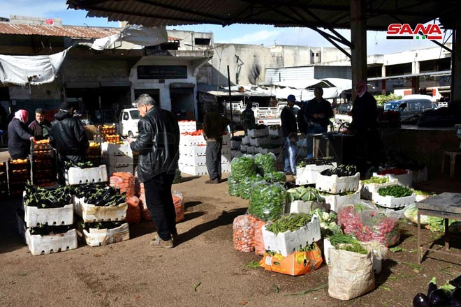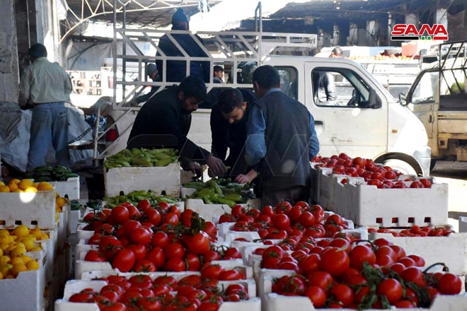29/03/2021 Mille camions par jour assurent des fruits et des légumes sur le souk d’al-Hal dans la ville de Homs 2021-03-29 admin Share tweet