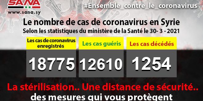 Dans un communiqué, dont une copie est parvenue à SANA, le ministère a fait savoir que le nombre des cas de coronavirus enregistrés jusqu’à présent en Syrie avait atteint 18775, dont 12610 cas de guérison et 1254 décès.