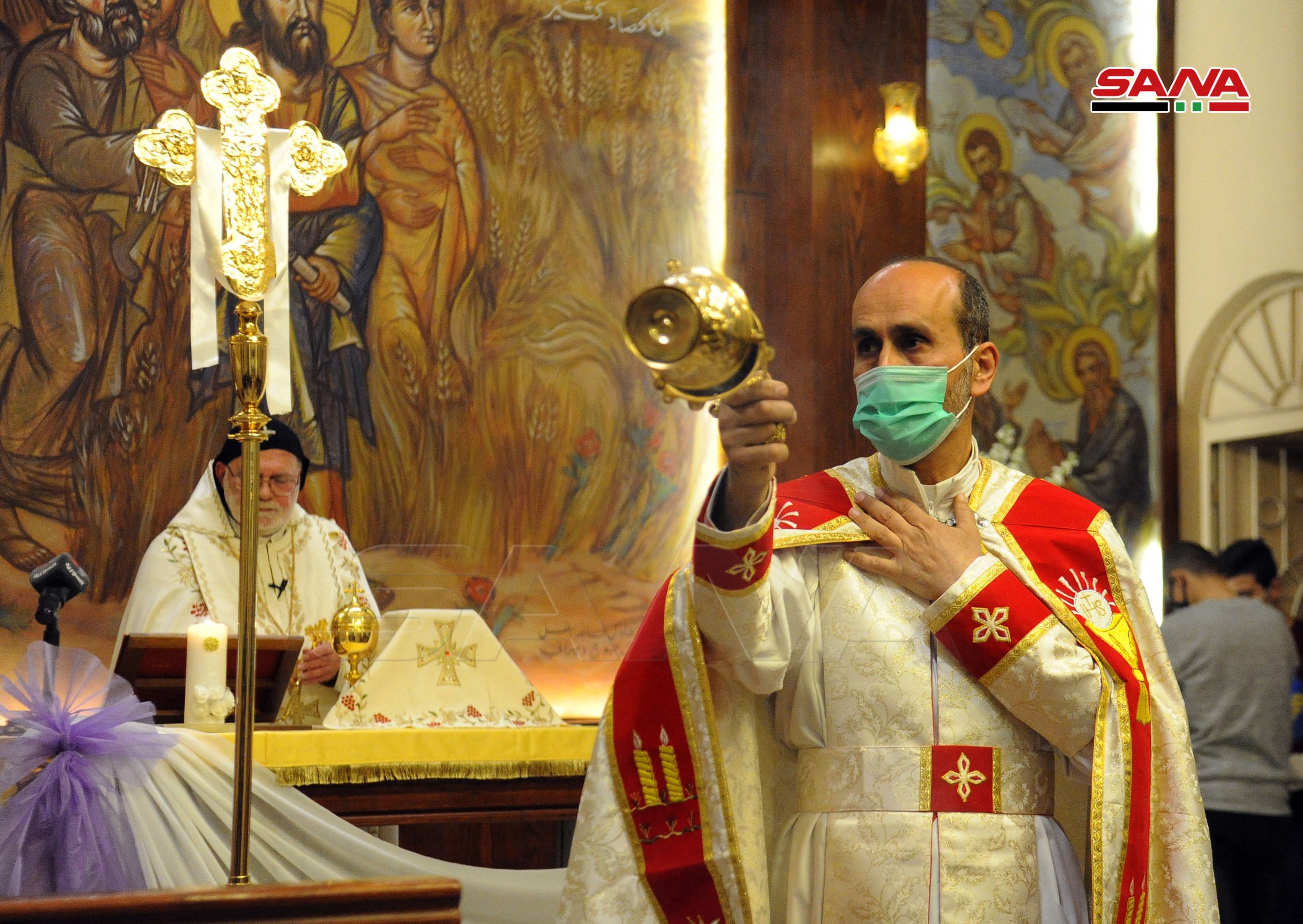 Damas-SANA / Les communautés chrétiennes en Syrie qui suivent le calendrier grégorien ont célébré les Pâques en organisant des messes avec le respect des mesures anti-coronavirus.