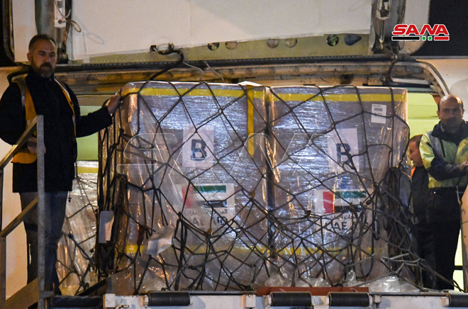 Damas -SANA/Un avion d’aides médicales et alimentaires octroyés par les Émirats arabes unis est arrivé aujourd‘hui à l’aube à l’aéroport international de Damas.