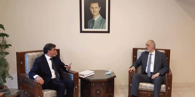 Damas-SANA/Le vice-ministre des Affaires étrangères et des Expatriés, Bachar Jaafari, a examiné avec l’ambassadeur Anwar Abdel Hadi, directeur du Département politique de l’Organisation de Libération de la Palestine (OLP) à Damas, les relations bilatérales et les derniers développements sur les deux scènes arabe et palestinienne.