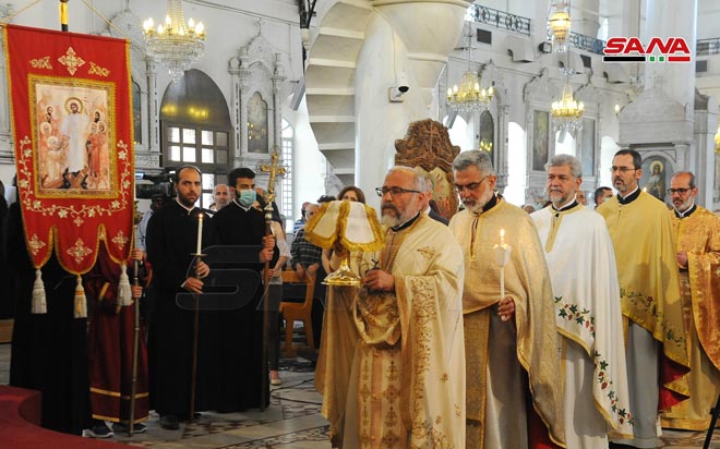 La messe des Pâques organisée à la cathédrale mariale des grecs orthodoxes à Damas