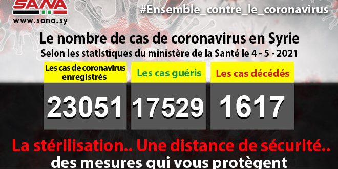 Dans un communiqué, dont une copie est parvenue à SANA, le ministère a fait savoir que le bilan des cas de coronavirus enregistrés jusqu’à présent en Syrie avait atteint 23051, dont 17529 cas de guérison et 1617 décès.