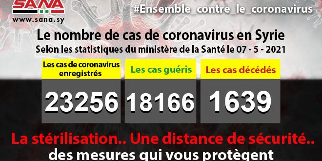Dans un communiqué dont une copie est parvenue à SANA, le ministère a fait savoir que le bilan des cas de coronavirus enregistrés jusqu’à présent en Syrie avait atteint 23256, dont 18166 cas de guérison et 1639 décès.