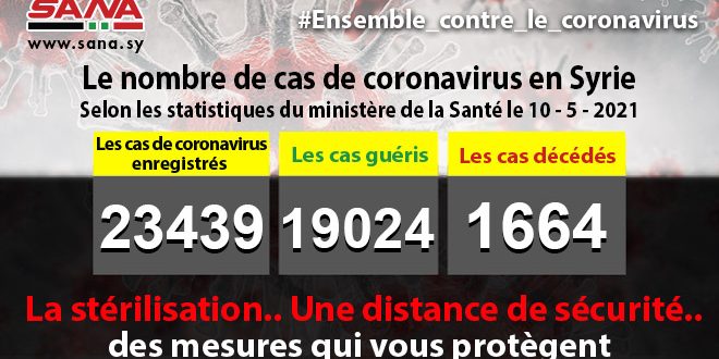 Dans un communiqué dont une copie est parvenue à SANA, le ministère a fait savoir que le bilan des cas de coronavirus enregistrés jusqu’à présent en Syrie avait atteint 23439, dont 19024 cas de guérison et 1664 décès.