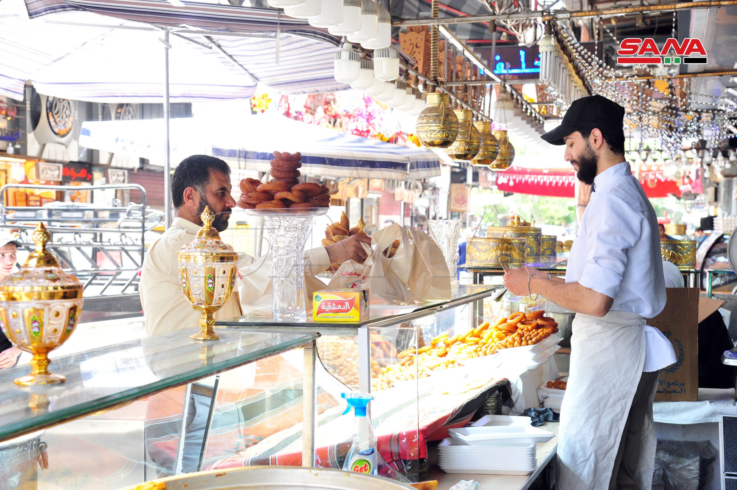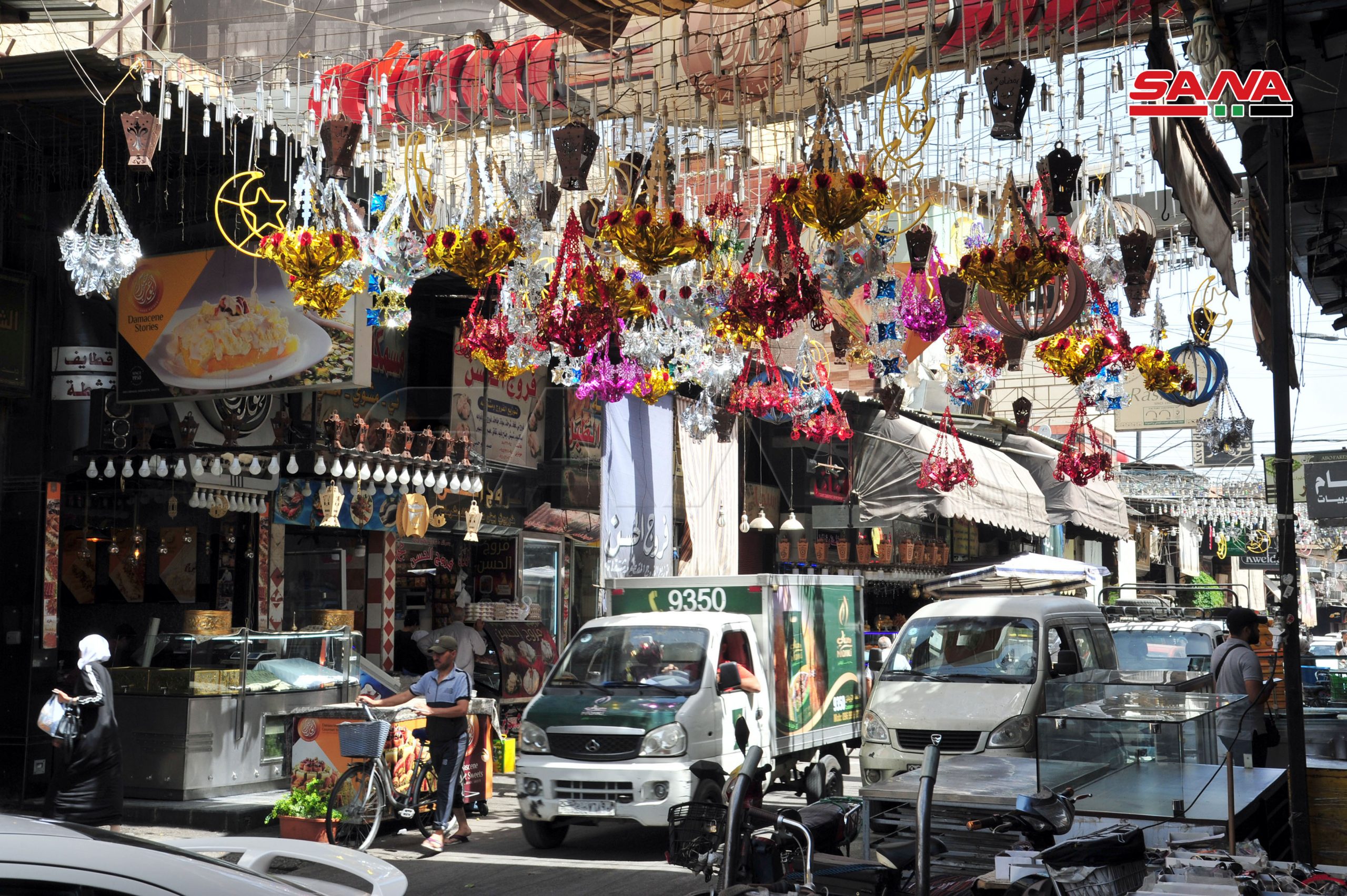 Les préparatifs de la fête d’al-Fitr au souk de Jazmatiyeh à Damas
