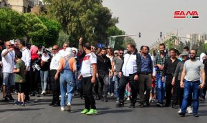 Damas-SANA/ Avec la participation de patients cancéreux et de nombreuses personnes de différentes catégories d’âge, un marathon sportif a été organisé aujourd’hui à Damas, en signe de soutien aux élections présidentielles prévues le 26 mai.