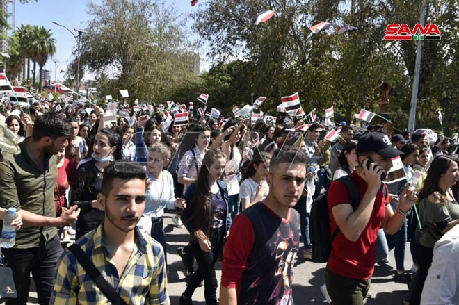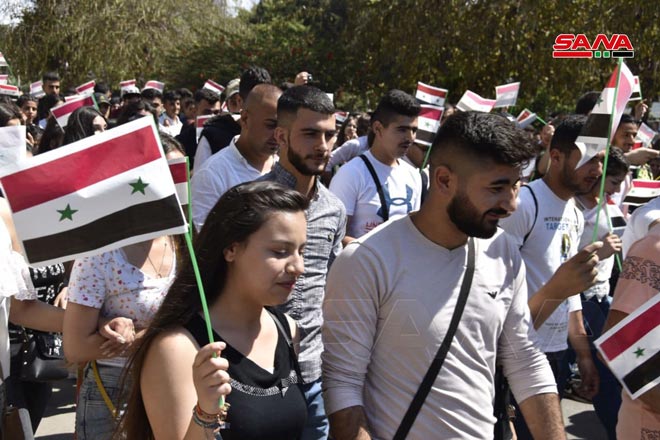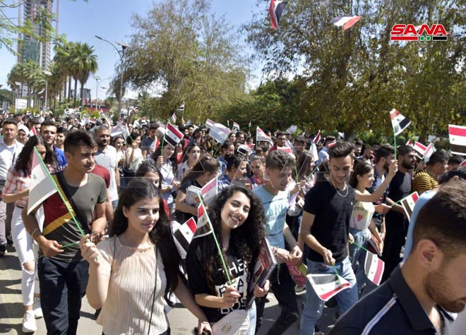 Une marche des étudiants de l’Université de Tartous en signe de soutien aux élections présidentielles