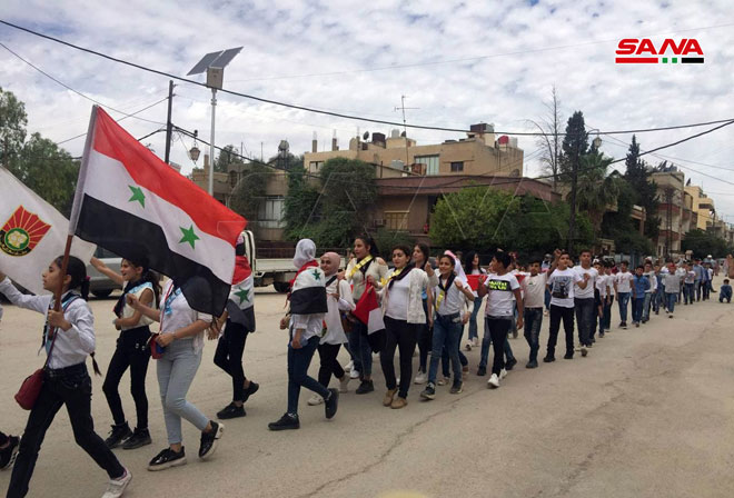 Une marche des étudiants de l’Université de Tartous en signe de soutien aux élections présidentielles