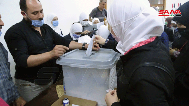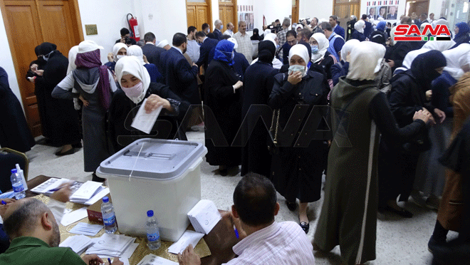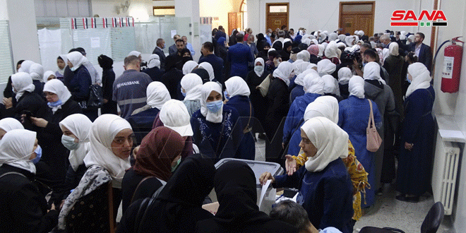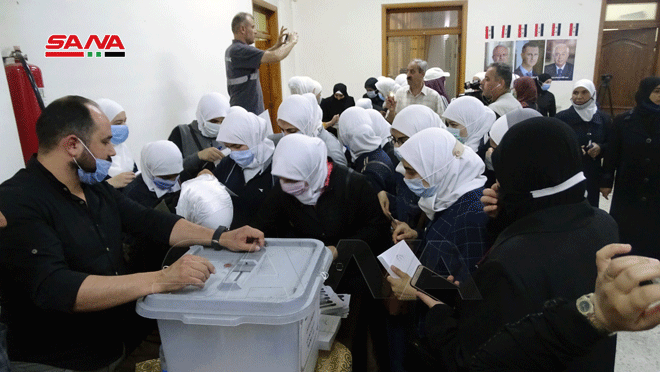 26/05/2021 Des enseignantes du Quran votent à la présidentielle dans le bureau de vote du ministère de Waqfs à Damas 2021-05-26 admin Share tweet